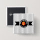 Den här återtagsknappen har en Halloween-pumpkin på en svart etikett med texten "Happy halloween" Personalisera med ditt namn eller annan text. Bakgrunden är en smal svart och vit stripe mönster. Sök i ID212 om du vill se andra produkter med den här designen.