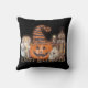 En dekorativ Halloween-vattenfärgillustration med en pumpa och en skalle, som lyder: "Happy halloween".
