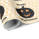 Pumpor från Festive Happy halloween sätter sig vid en anpassningsbar digitalt designad mönster av direktuppspelning av abstraktens pinjeformer.
