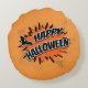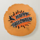 Happy halloween tecknad stil illustration med textdesign, fladdermus och stjärnor dekoration på halvtonsbakgrund. Det går att ändra bakgrunden till färg och lägga till en annan i designen efter eget val.