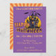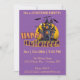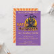Den här söta och visuella designen i Happy halloween kommer att glädja barn i alla åldrar. Det har ett hemsökt fånig med ett spöke ovanför det. Orange och grönt har ord-konst som säger Happy halloween, allt på en lila som är ny. Den här söta designen är underbar för att bjuda in till en speciell Halloween fest, en Halloween-födelsedagsfest, ett temaparty som till exempel ett kostym party. Anpassa dina gästuppgifter om party, datum, plats osv. till ge med dina party-uppgifter.