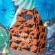 Coola i happy halloween, roligt och unika leveranser från Halloween fest, en idé om gåvofördelar för vem som helst. Halloween, svartflygande fladdermus-spooky silhouette helgdag mönster. Hallow Kväll flock av svart fladdermus. Du kan anpassa orange färg.