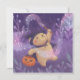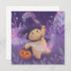 En söt illustration av en björn som bär en häxdräkt, som håller en pumpa basket och viker ett magiskt trollspö