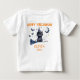 Den här beundransvärda baby t-shirt är perfekt för din lilla Halloween fest! Den har en blå svart katt med en Halloween-hatt sitta på en bom, fladdermus, matt, måne och stjärnor och texten "Happy halloween". T-tröjan kan anpassas med ditt barns namn och året. Den här t-tröjan är säkert slå med ditt barn och alla som ser det! Det är perfektens sätt att fira Halloween. T-shirt är också en unik och tänkbar gåva till föräldrar. Framsida och baksida tryckt.