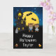 Denna roligt och detta skämtkort från Halloween kan vara personlig med namn eller titel, som dotter, barndotter, brorson, brorson, vän osv. Den har söta varulvar bredvid ett korkat hemsökt hus. I bakgrunden finns ett fullt med fladdermus och ett blått nattetid himlar med stjärnor. Texten kombinerar dekorativt och seriöst typsnitt för en snyggt och ett modernt utseende. Det här är perfekt för Halloween.