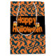 Svart och orange presentsäckar med tecknad stil och candy corn-häxor.