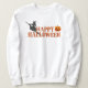Ta en Happy halloween med den här skjortan med en häxa på hennes bom och en skrämmande jack-o-iltern.