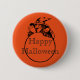 Happy halloween-häxknapp. Det är Orange och svart Happy halloween med en skrik svart katt kan anpassas för att lägga till namn, text eller ord. Klicka på "anpassa" om du vill lägga till din. Det är underbart för roligt Halloween-gåvor och -behandlingar!