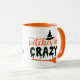 Vitcher är Crazy, roligt Happy halloween mugg i orange och svart.
