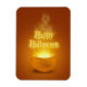 Mystic Halloween-illustration med en häxkaldron med kokande vätska, glödande gnistor och droppande Happy halloween typografi i hettens ånga.