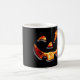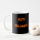 Flammande pumpaansikte med happy halloween som är skriftlig på andra sidan i läskig stilsort