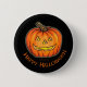 Linda Baysinger hack målning av orangen som ler jackolantern pumpa, med text som läser underbara gåvor "för happy halloween" för de, som firar denna hösthelgdag.
