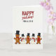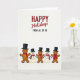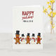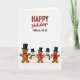 This holiday card is simple yet heartwarming, with a bright white background that makes the festive figures stand out. There are five characters on the card: three gingerbread men and two snowmen, all wearing matching black top hats and bright red scarves. They have simple, happy expressions and look like they are holding hands in a line at the bottom of the card. The characters' smiles made from icing or small dots give off a sense of joy and friendship. Above them, the words "HAPPY Holidays FROM ALL OF US" are written in bold red letters for "HAPPY" and a flowing script for "Holidays," with "FROM ALL OF US" in smaller letters. The overall feeling is cheerful and inviting, with soft lighting that highlights the characters' details. This card is perfect for spreading holiday cheer with its warm and inclusive message. 🎅🏼🎄🎁