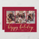 Happy Holidays Gold Script 3 Photo Collage Red Julkort