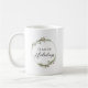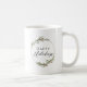 Mug featuring a minimalist watercolor wreath with red floral and green foliage accents. This elegant wreath frames the greeting "Happy Holidays". Makes a great gift.