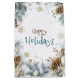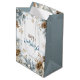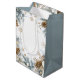 Simple and elegant Christmas gift bag featuring a beautiful watercolor abstract of pine trees in muted sage gray and brown and christmas decoration. "Happy Holidays" in a stylish script customize it with your text.