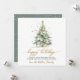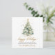 Modern Elegant Happy Holidays Script Christmas Tree Non Photo Christmas Cards. This festive simple minimalist Holiday cards features a watercolor christmas tree with decoration gold balls and confetti and a „Happy Holidays” greeting text which is written in a nice hand lettering Calligraphy font type in gold and white. On the back side "snowy" golden glitter or sparkling gold confetti on dusty green background. This festive Custom Personalized Christmas Cards are a great way to remind loved ones that you're thinking of them this Winter Holiday Season.