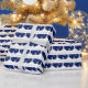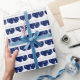This wrapping paper features an original and universal winter holiday design: a cottage in a snowy wood underneath a crescent winter moon. "Happy Holidays" message is underneath.