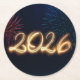 Happy New Year 2026 Sparkling Fireworks Underlägg Papper Rund