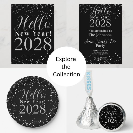 Hello New Year! Celebrate the arrival of the New Year with this stylish black and silver Happy New Year design. Featuring a silver, glitter confetti effect, sparkle design. Perfect for ringing in the new year in style! Customize easily by using the easy to edit templates. Contact the designer for help with personalization and customization.