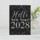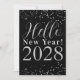 Happy New Year Black and Silver Sparkle New Year's Julkort
