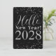 Happy New Year Black Silver Sparkle New Year's Julkort