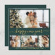 Happy New Year Script Green Gold 4 Photo Collage Julkort