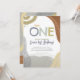 Celebrate your little one's big milestone with this stylish and modern Happy One Birthday invitation. Featuring a clean, minimalist layout with elegant typography and a sophisticated color palette, this design is perfect for a trendy and understated celebration. All text is fully customizable, allowing you to easily add your son's name, party date, time, and location. Printed on high-quality cardstock, this invitation sets a premium tone for your baby boy's special day.