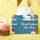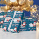 Happy Santa Claus cartoon with sheep Christmas Wrapping Paper. Cute Holiday design for friends and family. Personalized gift wrap for parents, children and babies. Funny joyful illustration with for the winter season. Add your own name and custom seasons greetings like Merry Christmas or Happy Holidays. Customizable background color.