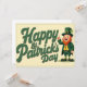 Charming St. Patrick’s Day design featuring a cute leprechaun in classic green attire, smiling and pointing upward beside bold festive lettering. A playful and retro-inspired artwork perfect for Irish celebrations and seasonal decor.