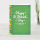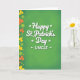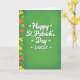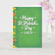 This card features a smooth green background that shifts from bright emerald at the top to deeper forest green near the bottom, like a soft nod to Irish hills 💚. Along the left edge, a vertical row of shamrocks in sunny yellow, warm orange, and light green climbs upward in mixed sizes, giving the layout an easy, friendly rhythm ☘️. Centered on the card, the main message reads “Happy St. Patrick’s Day UNCLE” in white, with “Happy St. Patrick’s Day” in a flowing, loopy style and “UNCLE” in a simple all-caps type. The words sit in stacked lines, balanced and roomy, as if they’re leaning in close for a familiar greeting. Small white four-petaled blossoms appear as tiny accents around the lettering, like little pauses that make the message feel gentle and affectionate. A faint shadow under the white text lifts it slightly off the green field, making the letters stand out without looking heavy. The shamrock border stays to the left while the centered white text and scattered blossoms remain the main focus against the green gradient.