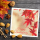 Dessa pappra servetter är ett enkelt sätt att dekorera bord och så enkelt efter middagen att rensa upp. Den här designen har en gräns av rött löv över en baksida av klisterbeige med båge. Anpassa texten i mallen fält med ditt meddelande eller ta bort text.