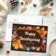 Vackra mörk bruna Happy thanksgiving-vykort för att ett företag ska skicka sin tacksamhet till kunderna under julhelgen. Anpassa till ditt företag namn inuti orange lövs vattenfärgsfallsfolie. Anpassningsbar på baksidan för hösten marknadsföring.