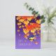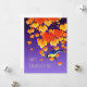 vykort för thanksgiving med fallscen: vindruvor för vild med orange, rött, guld löv och lila druvor. En underbar sitta på gren. Blå, ljusa gult, svart. Fet höst färg, vacker och levande. Bild baserad på en japansk bra av vintage.