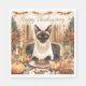 Celebrate Thanksgiving with a touch of feline charm! These Happy Thanksgiving Napkins feature an elegant Siamese cat wearing pearls , surrounded by autumn flowers, pumpkins, and cozy harvest decorations — all illustrated in bright, modern watercolor style. Perfect for cat moms, pet lovers, or Thanksgiving hosts who adore adding personality to their holiday table.