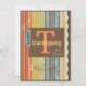 Stripe-Thanksgiving-kort. En söt kombination av höst färger, inklusive ljuspumpor, grått-blått, gult och brunt. Det finns en söt blå filmappflik på kant i papper som har en stor T-fil och säger Thanksgiving. Vissa söt mörk bruna rullningsarbeten avslutar av kortet. Kortet är lämpligt för vänner eller familj. Kan fungera som en inbjudan till Thanksgiving middag eller ett fall firande. Varmtoner och kreativ rand gör detta unika kort mycket attraktivt.