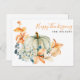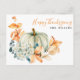 Happy thanksgiving! Kortet har en pumpa och blommor i mjuk höst färger. Du kan anpassa meddelandet på baksidan eller ta bort texten för att få plats för en handskriven anteckning.