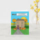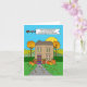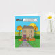 En söt illustration av ett hus med en regnbågsskyddad dörr och gardiner. Ett flygplan flyger över huset och det har en banderoll bakom sig som säger "Lycklig Thanskgiving till en mycket speciell systerson och hans make".
