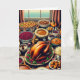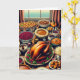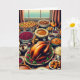 Ett kort för att önska vänner och familj i Happy thanksgiving med en roligt tecknad bok stil illustrera en kalkonmiddag.