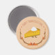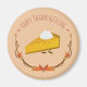 Magnet med en Thanksgiving design. En leende biet av pumpkin paj som är full med piskgrädde omges av ett säsong ram av höst löv och dekorativt grenar. Ovanför utformningen av programmet ord ’Happy thanksgiving’. Orden kan anpassas efter dina önskemål.