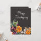 Skicka ett hälsning till vänner och familj nära och långt för Thanksgiving, med det här rustiska höstskördekortet happy thanksgiving som innehåller pumpor, blad och bär på en träkol-grått-bakgrund med elegant-manustyp. Se produktsamlingen för den här designen och dess variationer på: https://www.zazzle.com/collections/happy_thanksgiving_watercolor_pumpkins_autumn-119032508465779352