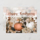 Happy thanksgiving vykort. Skriva ett personlig-meddelande på baksidan. Löv, blommor och pumpor/höns/Orange, vit, grönt och brun.