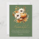Oliv grönt tacksamt Helgdag med Blommigt i happy thanksgiving. Bygg tacksamhetsandan med vårt Helgdag-kort för Thanksgiving, där säsongens värme möter elegantens utformning. Mot en oliv grönt bakgrund av riken kommer en arrangemang bild av pumpor och blommor till toppen, som symboliserar den rikliga skörden och naturens skönhet under hösten.