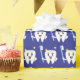 Cute smiling tooth with a toothbrush on a bold blue background.