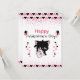 The front showcases a lovable black kitten holding a Valentine envelope, surrounded by floating hearts and playful Valentine accents. The bright greeting “Happy Valentine’s Day” instantly sets a joyful tone that’s perfect for classmates, friends, and teachers.