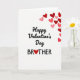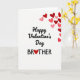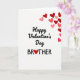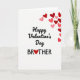 This card keeps things simple with a white background and a clear message about family love ❤️. The words “Happy Valentine’s Day” appear near the top in black, flowing cursive-style lettering. Just below that, “BROTHER” is written in all-caps black letters that look sturdy and easy to read. A bright red heart replaces the “O” in “BROTHER,” drawing your eye right to the middle of the word. In the upper right corner, a cluster of small hearts in reds and pinks seems to drift outward like a little burst of affection. The open space around the text makes the message feel calm and direct, without distractions. It’s a meaningful card to give because it says “I care about you” in a straightforward way that still feels warm 🥰. Hope it helps you share Valentine’s Day feelings with someone you love.