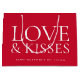 Personalized gift bags add an extra touch of luxury to any gift. This stylish design features "Love & Kisses" in classic typography, and can be customized with the recipient's name and a "Happy Valentine's Day" message. A versatile template that can be adapted for a birthday, bridal shower, bachelorette party, holiday, and other special occasions. Its elegant design is a unique addition to your gift wrap, and a lovely choice for a girlfriend, boyfriend, husband, wife, daughter, or best friend. Available in either a matte or glossy finish. Printed colors: red and white — or customize the colors with the design tool.
