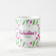 Happy Valentine's day coffee mug decorated with pink tulip pattern on white background.