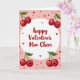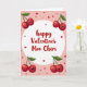 Designed with a soft blush-pink background, this Valentine’s Day card feels sweet and friendly right away. In the middle there’s a white oval that holds the message “Happy Valentine’s Mon Chéri.” The words are written in red, with a casual handwritten look, and they sit centered inside the oval. Small red hearts are scattered across the pink background, giving the whole scene a loving mood 💘❤️. In each corner, there’s a pair of bright red cherries with big eyes, smiles, and green stems and leaves. Most of the cherry pairs look happy and excited, like they’re sharing a little joke together. In the bottom right corner, one cherry looks a bit more quiet or unsure next to its smiling partner, which adds a relatable touch 😘. It’s a simple, sweet card that’s easy to give when you want to share Valentine’s Day sentiments.