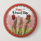 Happy Women's Day Red Button Hands Holding Tulips Knapp